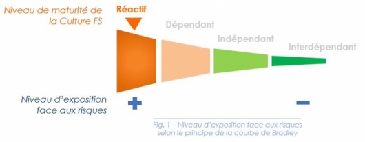 Nous vous proposons un module de formation court, adossé à un outil synthétique, simple d’utilisation, cohérent avec les propositions du GFSI, qui vous permet d’évaluer votre niveau de maturité - selon la courbe de Bradley (fig.1) - pour enclencher des actions d’amélioration pertinentes.