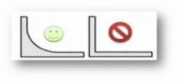 Le raccordement entre 2 surfaces doit présenter un arrondi afin de limiter le risque d’accumulation de souillures mais aussi l’accessibilité au nettoyage (congé de 6 mm minimal).