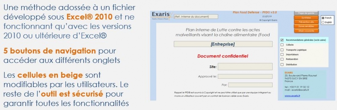 Les premières interrogations de nos clients quant à la réponse à apporter aux exigences de l'IFSv6 en matière de Food Defense nous avaient conduits à rédiger trois ExarisInfo sur le sujet (55, 50, 36). Nous avions alors conclu que les textes et guides en la matière ne proposaient pas de méthode opérationnelle réaliste: VACCP et TACCP s'avérant des "idées" (méthodologiquement discutables par ailleurs) n'ouvrant pas sur une méthode aboutie, CARVER montrant vite ses limites par son défaut de pragmatisme et une lourdeur difficilement praticable. Nous avons donc cherché une troisième voie: c'est ainsi qu'est né le PFD©-Plan Food Defense.