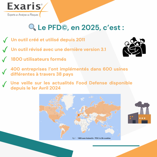 En association avec ce module, depuis le 1er Avril 2024, Exaris propose une veille Food Defense. Une FAQ présente cette nouvelle prestation alimentant les systèmes de prévention des actes de malveillance des entreprises et utilisateurs du PFD©.